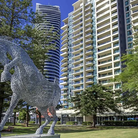 Featuring a restaurant, the luxurious Mantra Broadbeach On The Park Gold Coast hotel lies a mere 10 minutes' walk from the Pacific Fair Shopping Centre. Guests can spend time relaxing in a heated pool, or admire a steam room, a hot tub, and a sauna in this 4-star aparthotel, located in close proximity to The Oasis Shopping Centre.